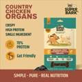 SUPER BARK's Country Chicken Organs are natural source of protein, vitamins, and minerals from dehydrated Country Chicken organ meats (like liver, heart, gizzard). This natural, crunchy treat is simple to store and carry for all dogs 🐕.