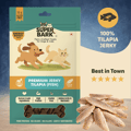 Light & easy to digest! SUPER BARK Premium Tilapia Fish Jerky offers lean protein & B vitamins from carefully sourced fillets. Perfect everyday treat! 🐕.